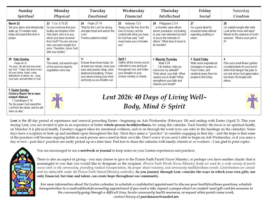 Lenten Prayer Breakfast ~ Wednesday, Feb. 25 at 7:00 a.m. Men at Bethlehem Lutheran Church and Women at the Methodist Church.